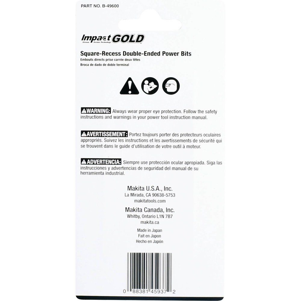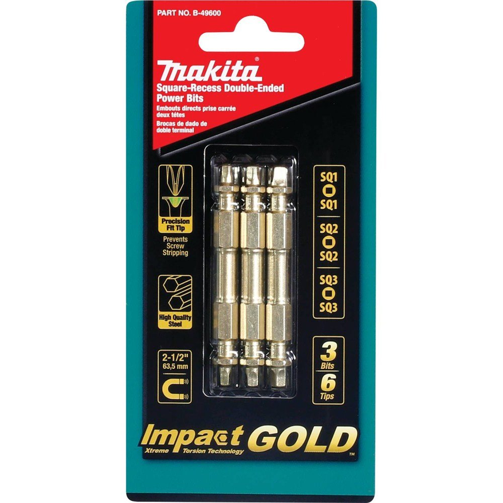 Makita B-49600 Impact Gold 3 Pc. Assorted (2-1/2″) Square Double-Ended Power Bits