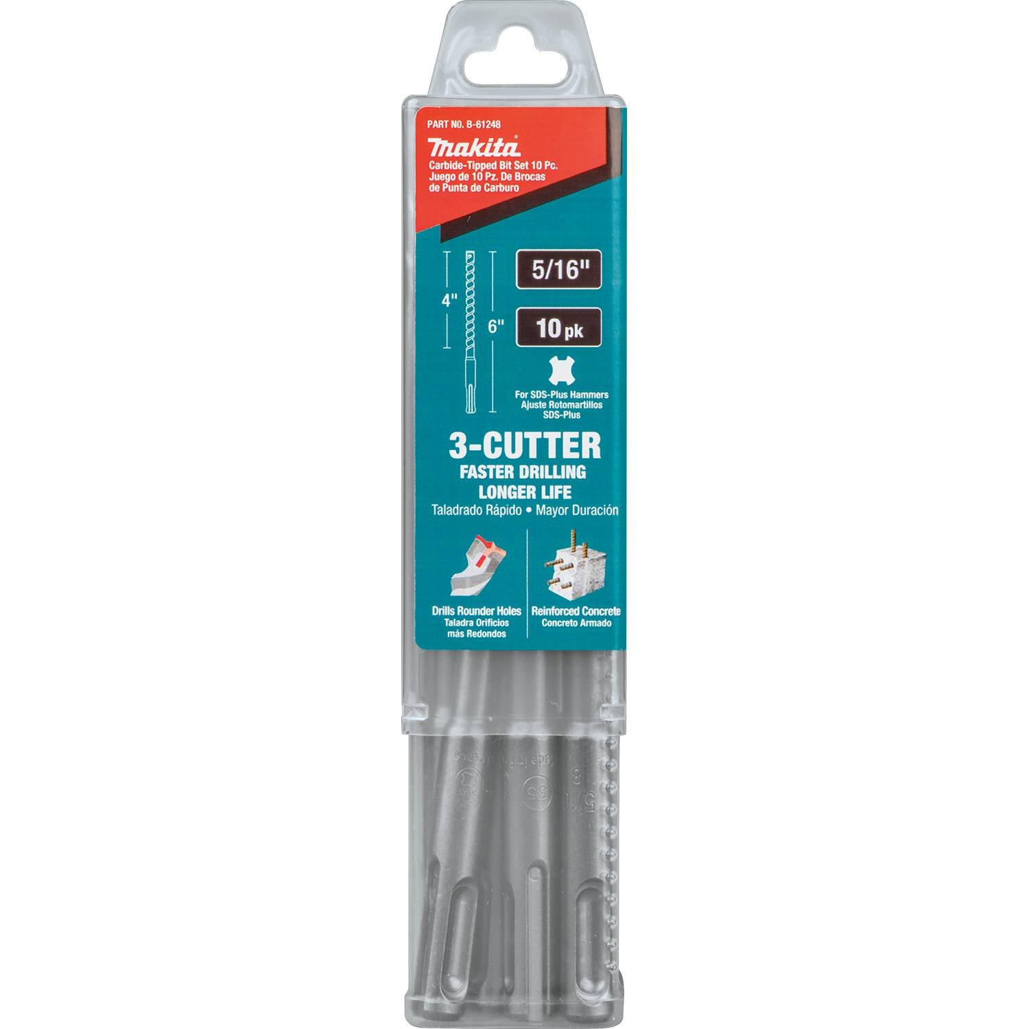 Makita B-61248 5/16″ x 6″ SDS-Plus Bit, 3-Cutter, 10/Pk