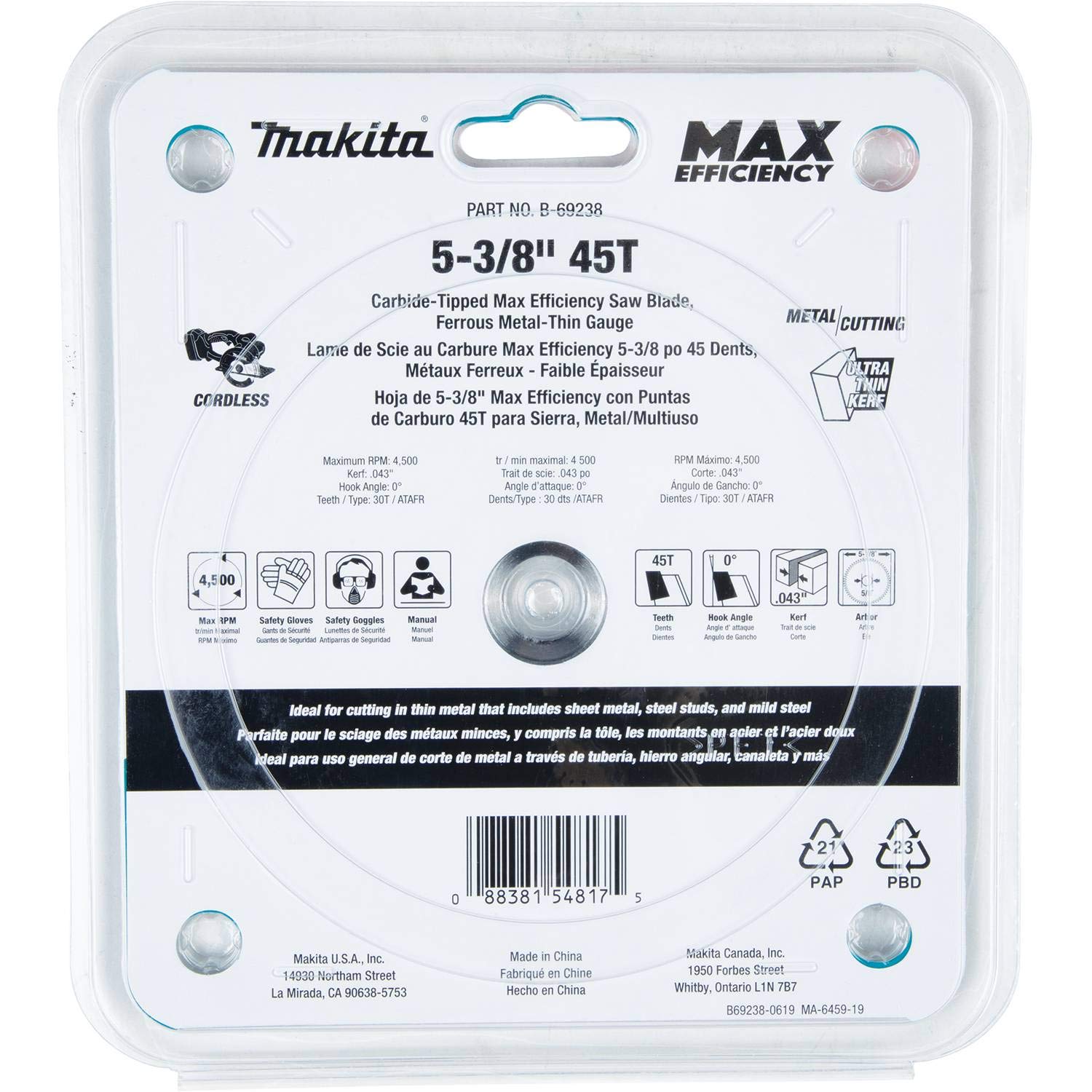 Makita B-69238 5-3/8″ 45T Carbide-Tipped Max Efficiency Saw Blade, Ferrous Metal-Thin Gauge