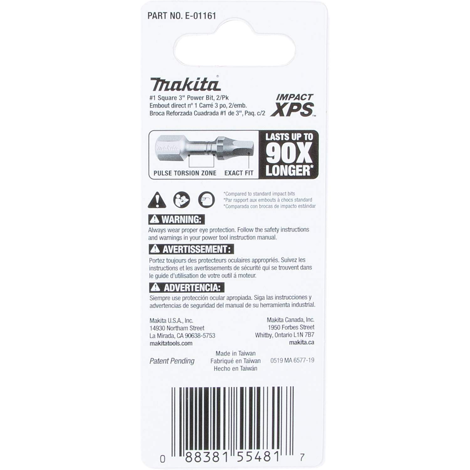 Makita E-01161 Impact XPS™ #1 Square 3″ Power Bit, 2/pk