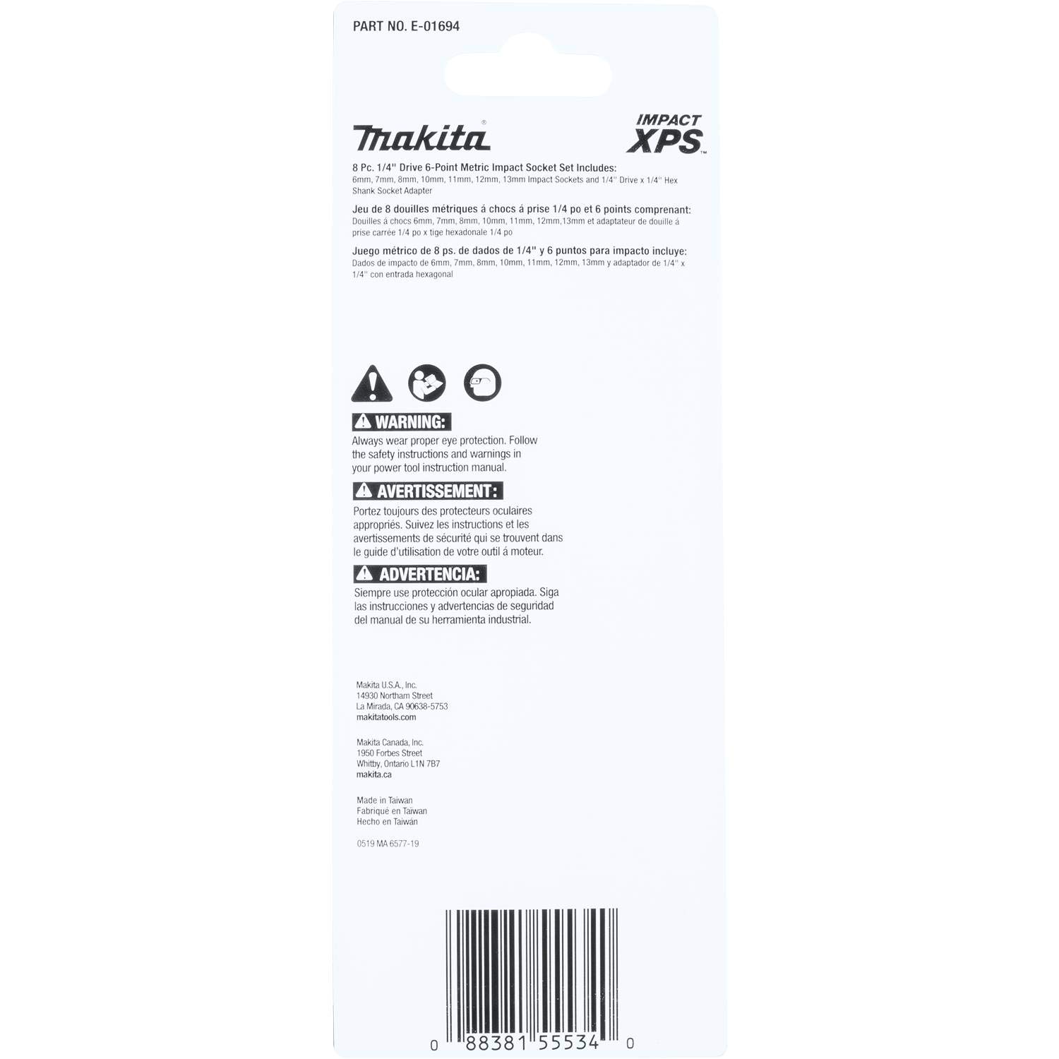 Makita E-01694 Impact XPS® 8 Pc. 1/4″ Drive 6-Point Metric Impact Socket Set w/Standard Socket Adapter