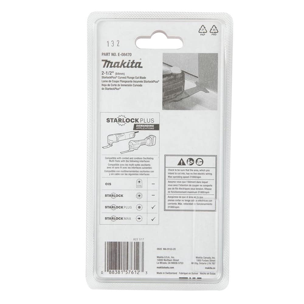 Makita E-08470 StarlockPlus® Oscillating Multi-Tool 2-1/2″ Bi-Metal Curved Plunge Cut Blade