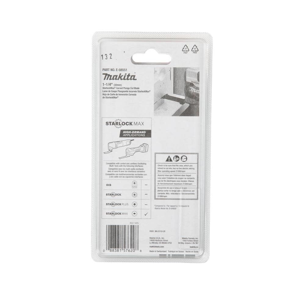 Makita E-08551 StarlockMax® Oscillating Multi-Tool 1-1/4″ High Carbon Steel Curved Plunge Cut Blade