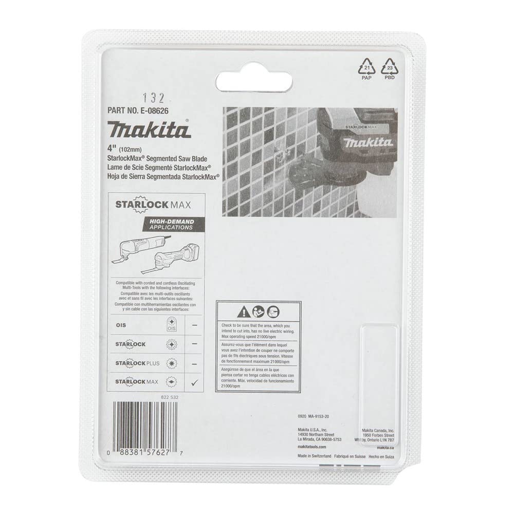 Makita E-08626 StarlockMax® Oscillating Multi-Tool 4″ Hard Metal with Tungsten Carbide 40 Grit Segmented Saw Blade