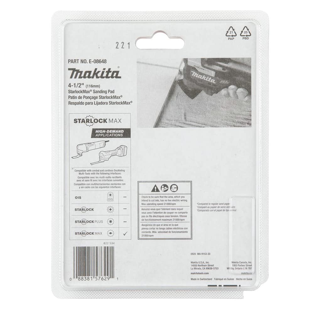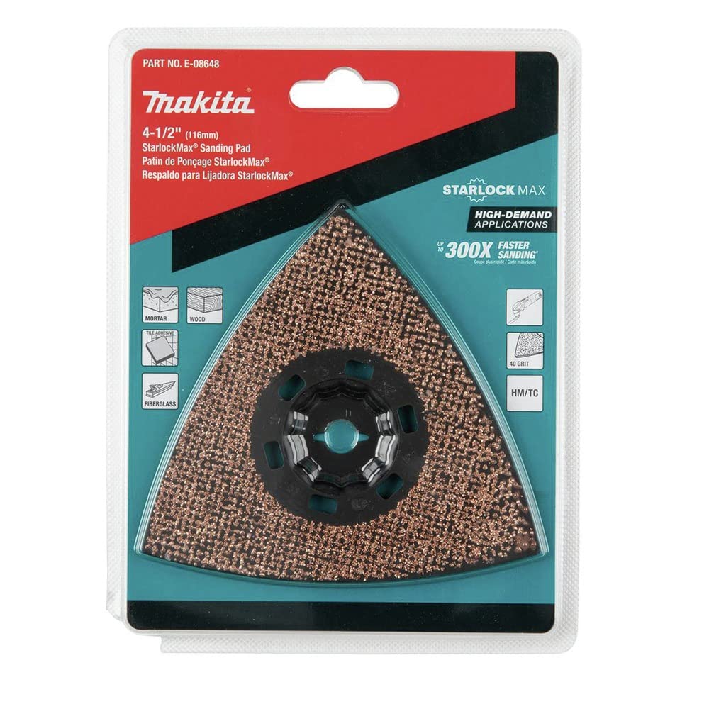 Makita E-08648 StarlockMax® Oscillating Multi-Tool 4-1/2″ Tungsten Carbide 40 Grit Delta Triangle Sanding Pad