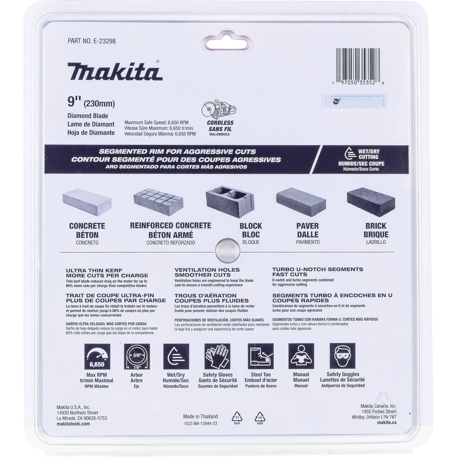 Makita E-23298 9″ Thin Kerf Diamond Blade, Segmented, General Purpose