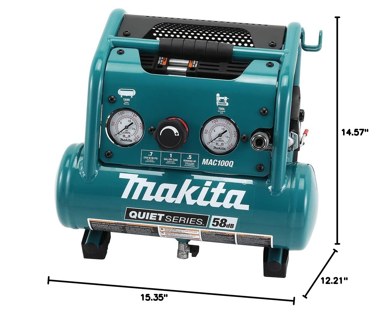 Makita MAC100Q Quiet Series, 1/2 HP, 1 Gallon Compact, Oil-Free, Electric Air Compressor