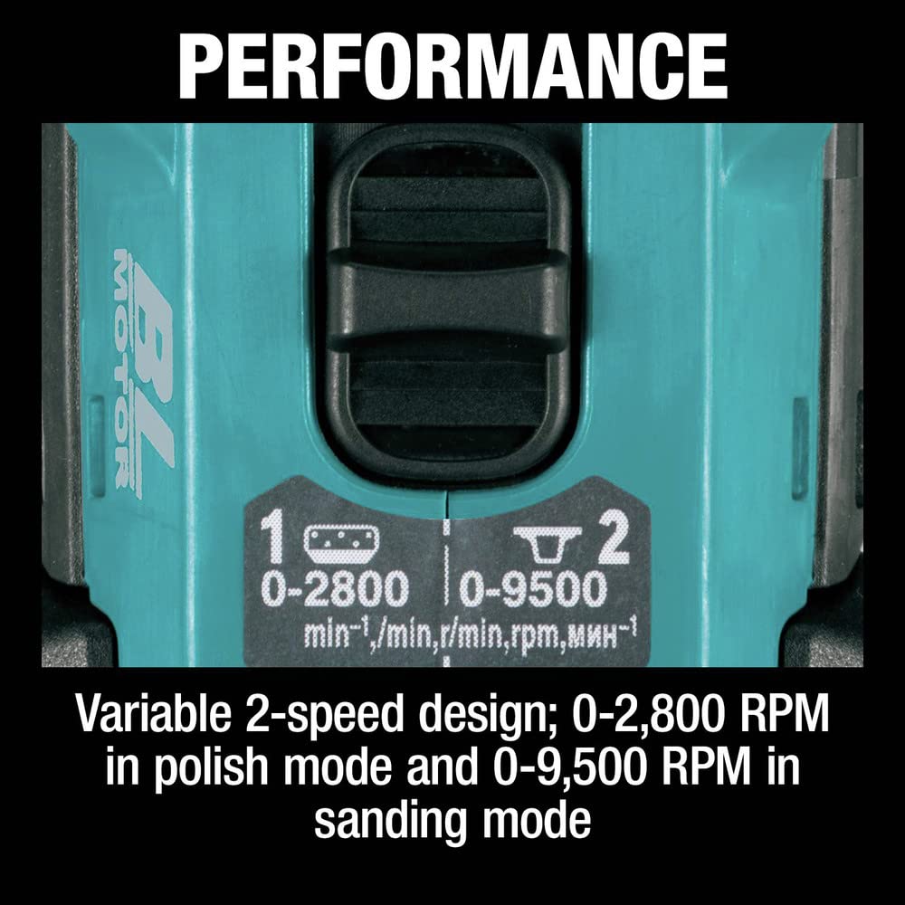 - Variable 2-speed design; 0-2,800 RPM in polish mode and 0-9,500 RPM in sanding mode
