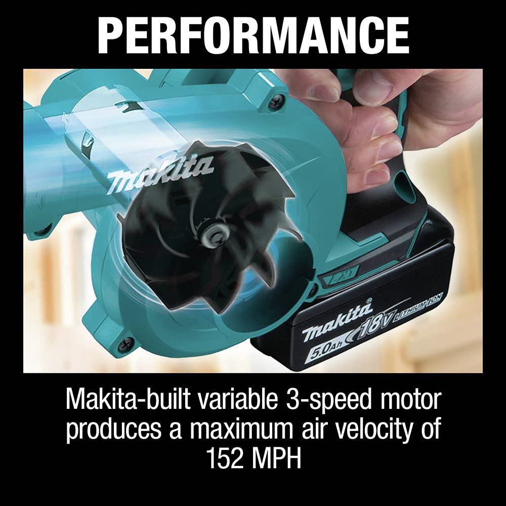 - Makita-built motor delivers up to 113 CFM and 152 MPH