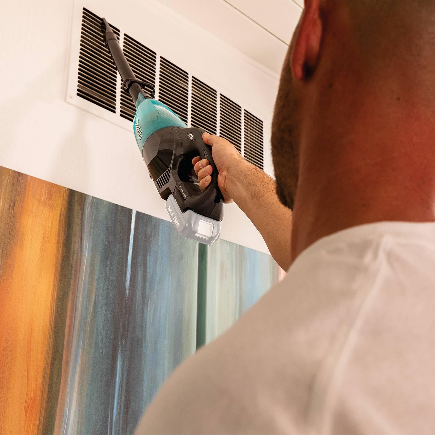 - Makita-built brushless motor runs cooler and more efficiently; delivers up to 90 Watts of suction power