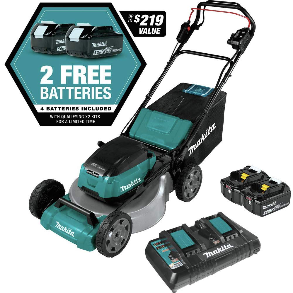 Makita XML06PT1 36V (18V X2) LXT® Brushless 18″ Self-Propelled Commercial Lawn Mower Kit with 4 Batteries (5.0Ah)
