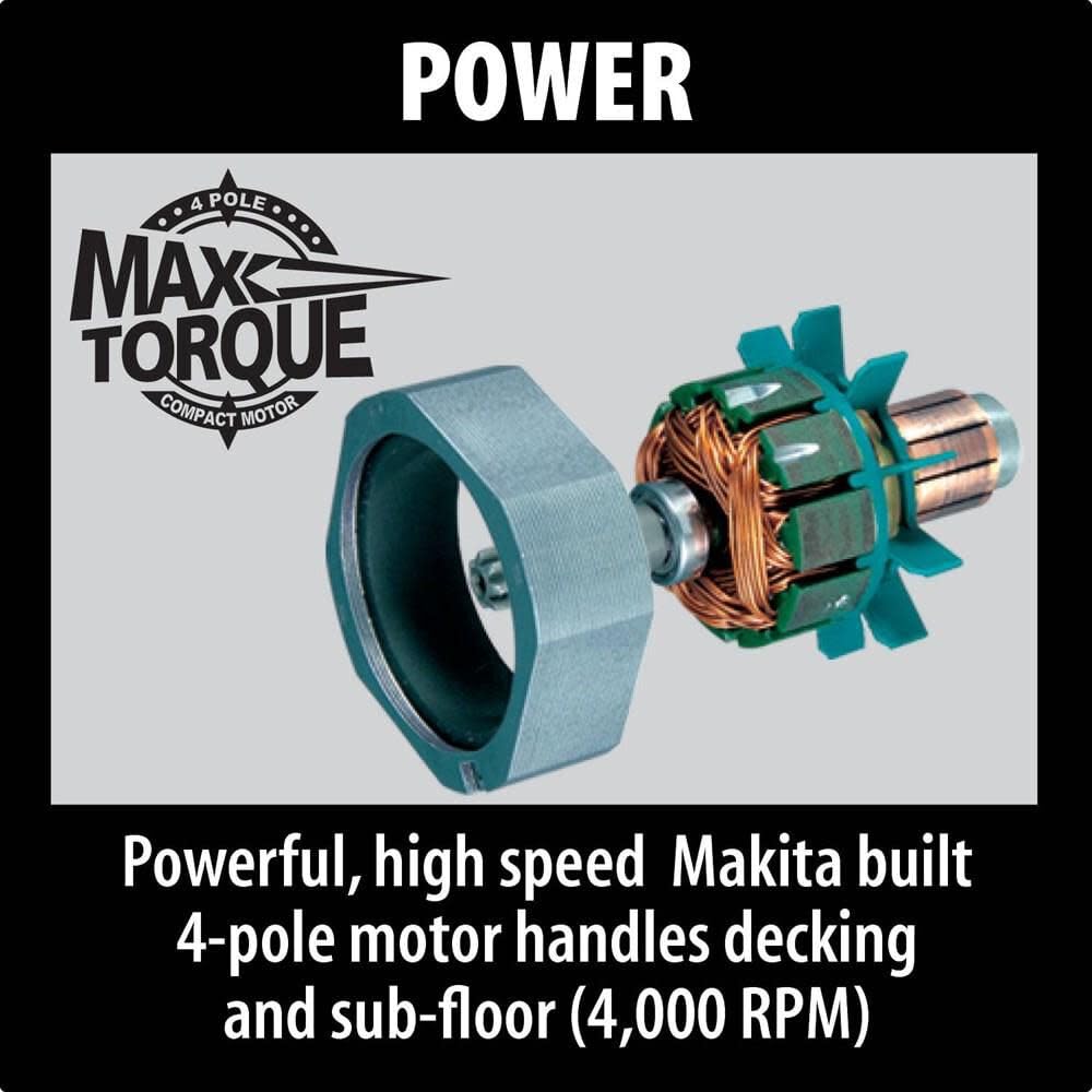 - Makita-built 4-pole motor delivers superior fastening speed with 4,000 RPM for decking and sub-floor applications